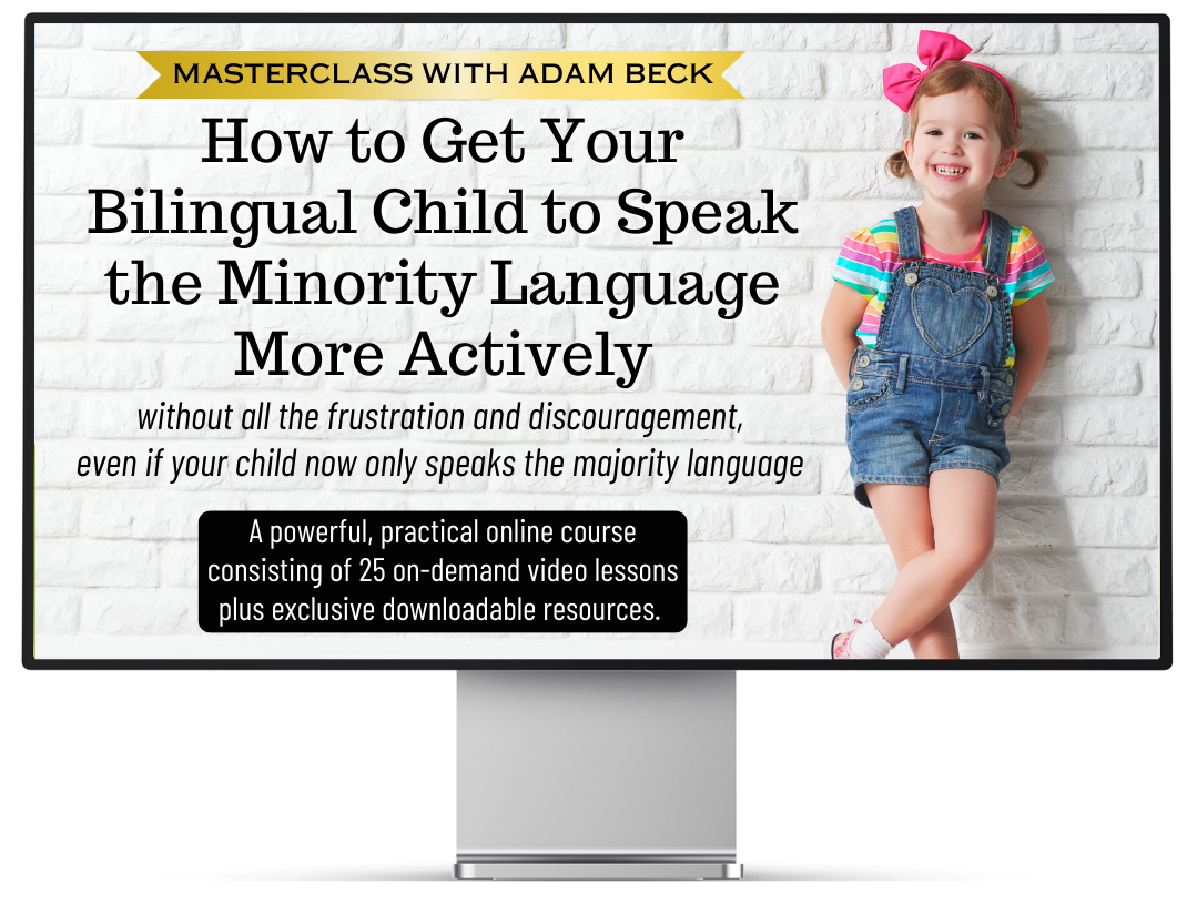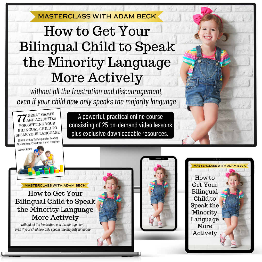 Adam Beck, author of the popular, empowering books Maximize Your Child's Bilingual Ability and Bilingual Success Stories Around the World, leads a must-watch masterclass for parents. Packed with practical, real-world ideas, this motivating course, with interactive support, will energize your efforts and ensure more successful, more joyful results for your family's bilingual or multilingual journey. š